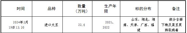 受中储粮油脂有限公司委托,2024年3月19日13:30在国家粮食和物资储备局粮食交易协调中心及联网的各省(区、市)湖北粮网组织开展进口大豆竞价交易,请交易会员通过湖北粮网官网()“用户中心”,登录国家粮食交易平台,在专场列表中选择“进口大豆竞价销售交易”参与交易。现就有关事项公告如下(重点提示内容详见加粗字体部分)
